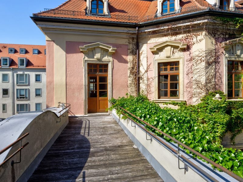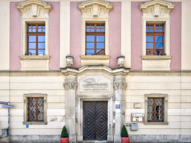 ist ein schönes Barockpalais, nur einen Steinwurf vom Dom entfernt. Im Erdgeschoss befindet sich die Bar mit Gartensaal und Kabinett. Angrenzend liegt der Rosengarten. Im ersten Stock bieten der Oktagonsaal und der Rote Salon verschiedene Möglichkeiten für Deine Veranstaltung. Das Haus bietet Platz für bis zu 100 Gäste.